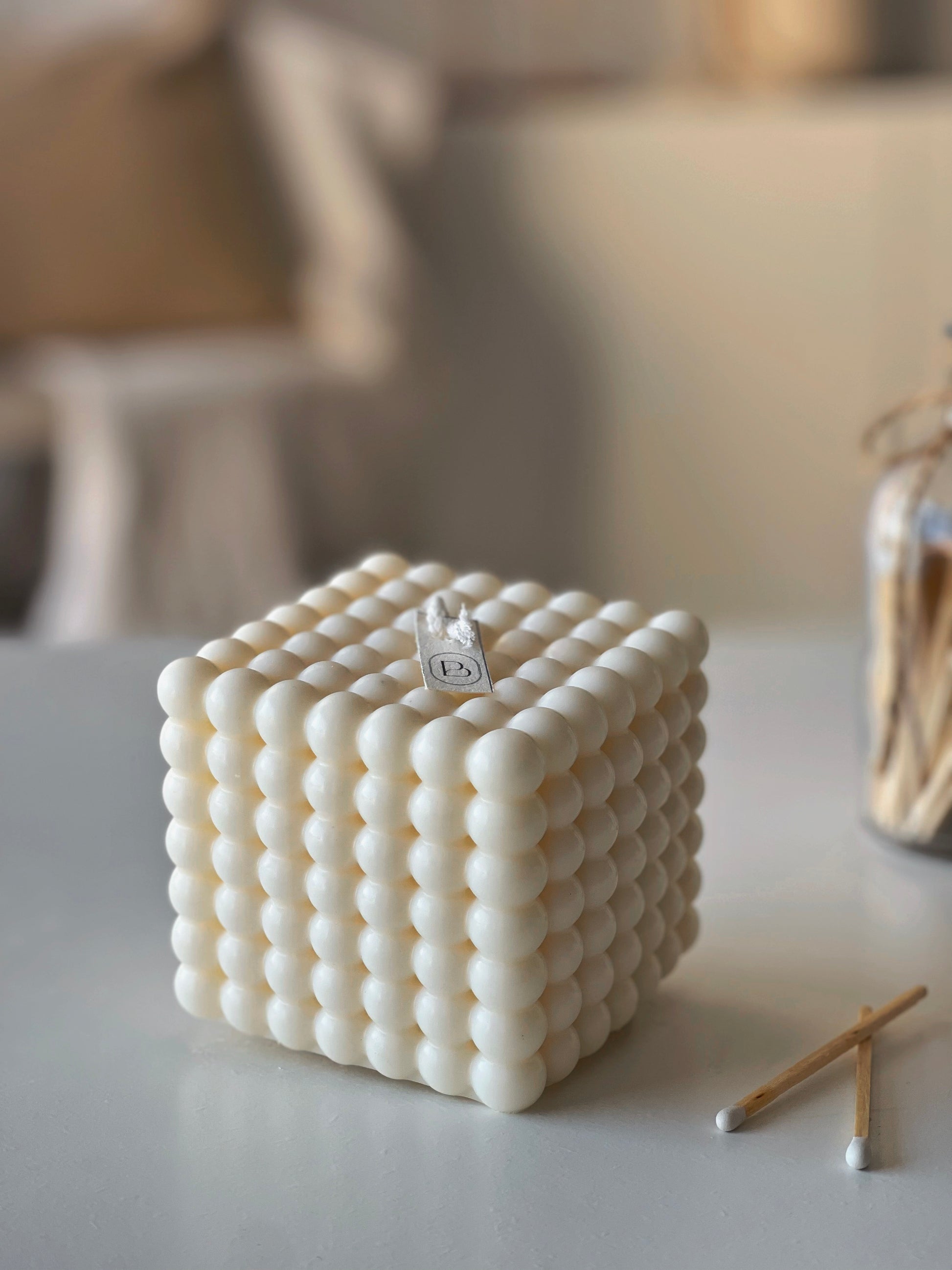 Apportez une touche contemporaine et élégante à votre intérieur avec notre bougie décorative "Big Bubble", conçue en forme de cube à bulles. Avec son design minimaliste et raffiné, cette bougie est l'accessoire parfait pour sublimer votre espace tout en créant une atmosphère chaleureuse et apaisante.