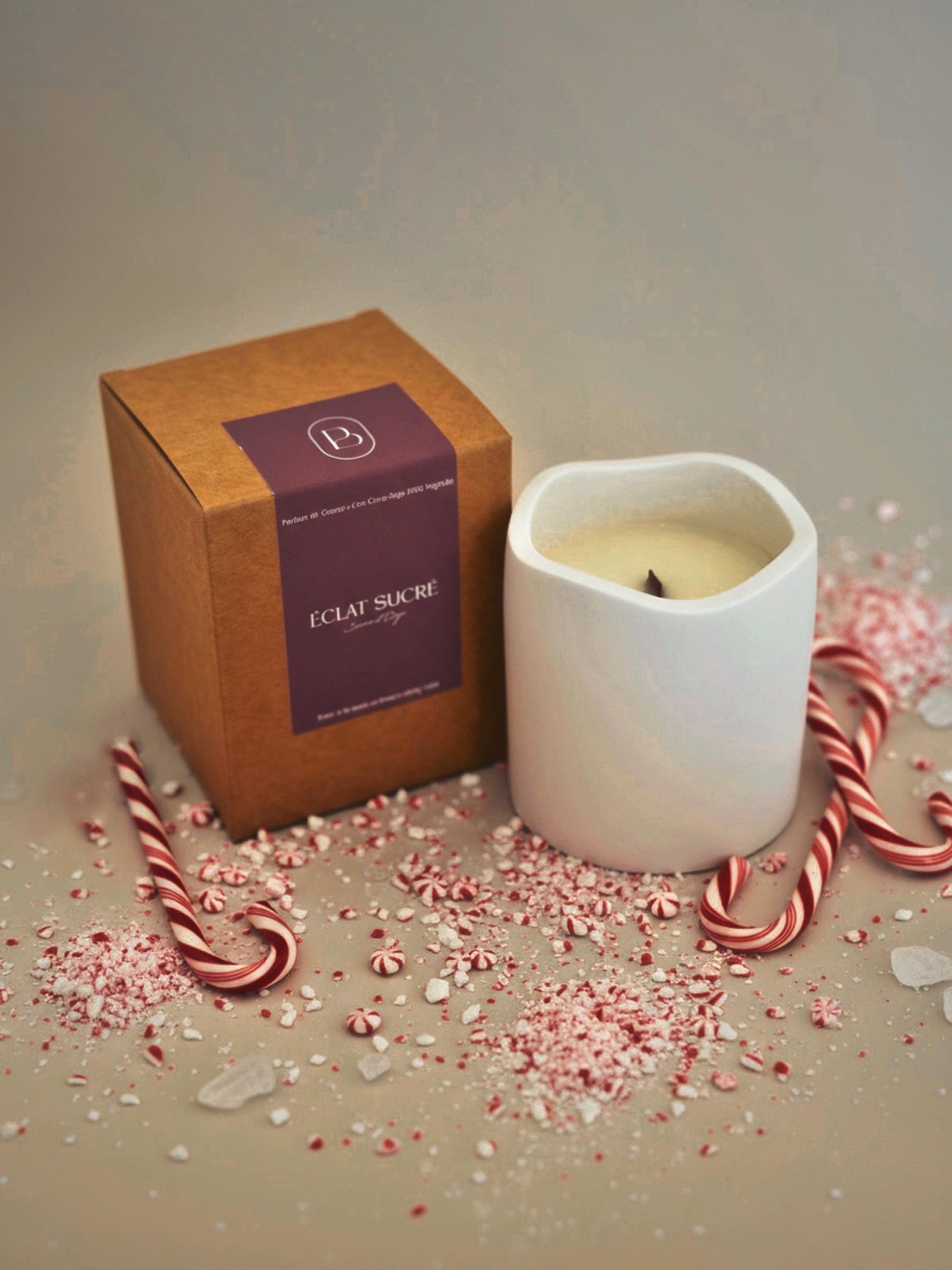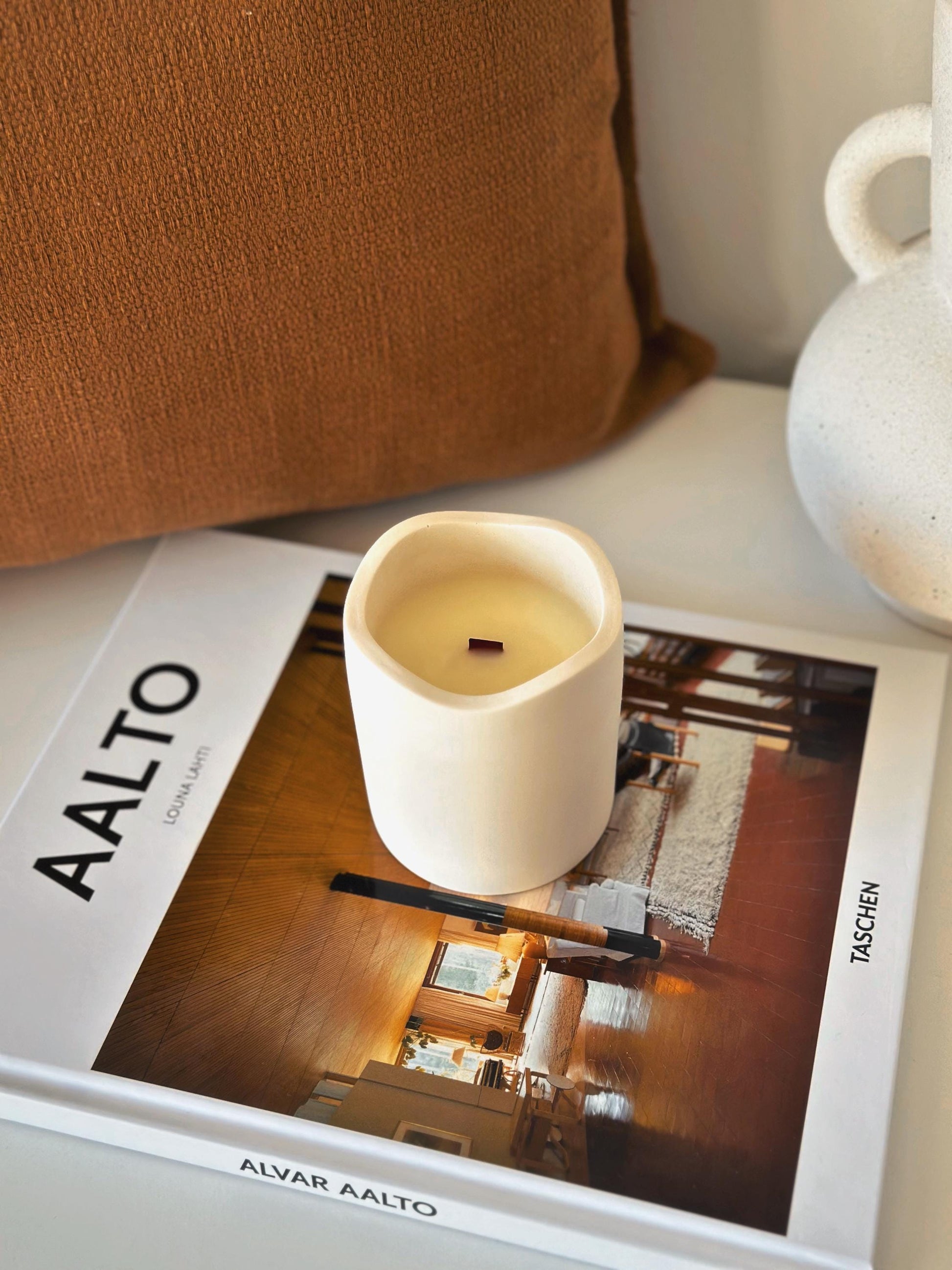 Nos bougies sont fabriquées à partir de cire de soja 100 % naturelle, d’un parfum de Grasse raffiné et d’une mèche en bois crépitante, pour une combustion propre et une atmosphère chaleureuse.
