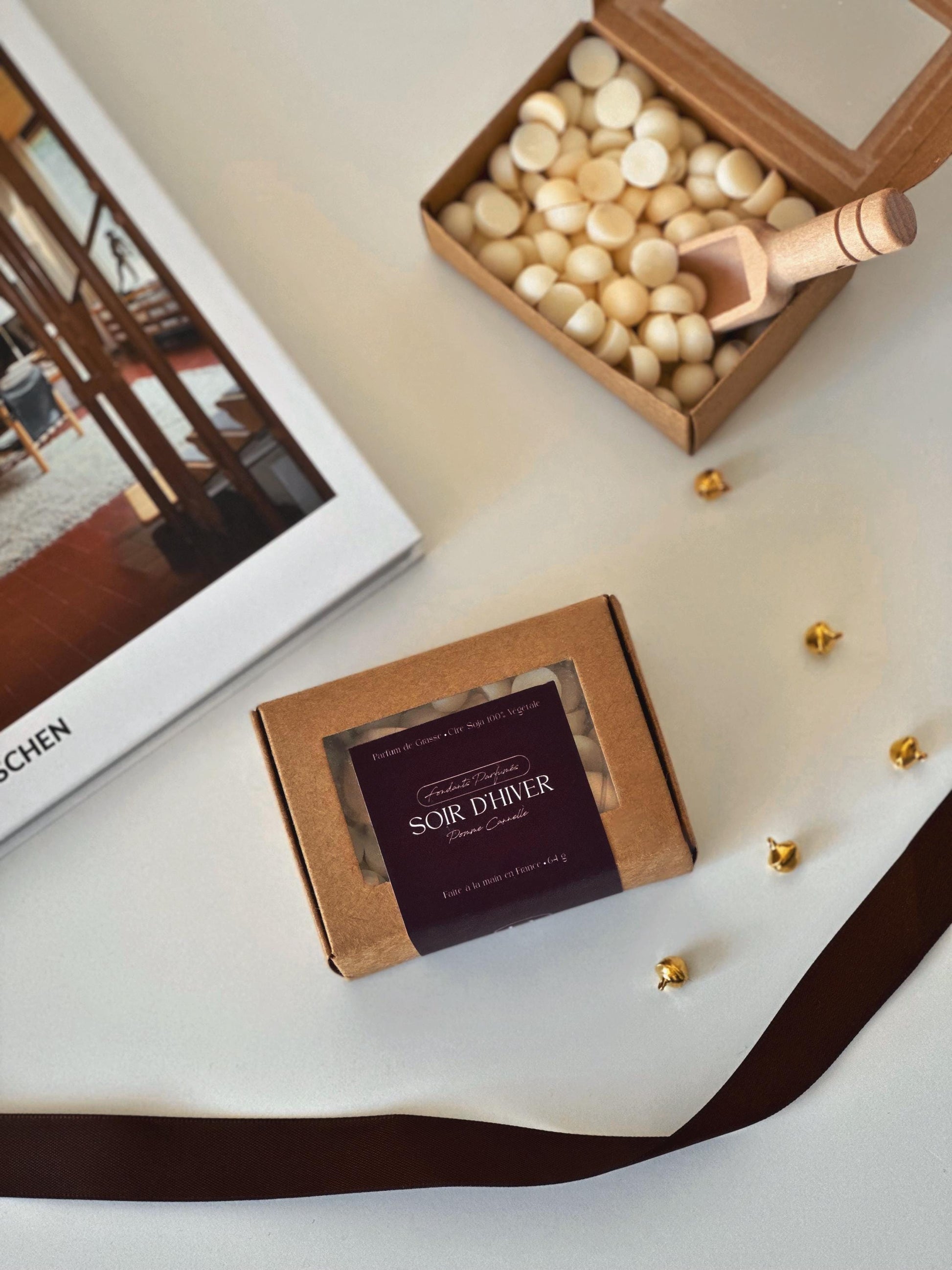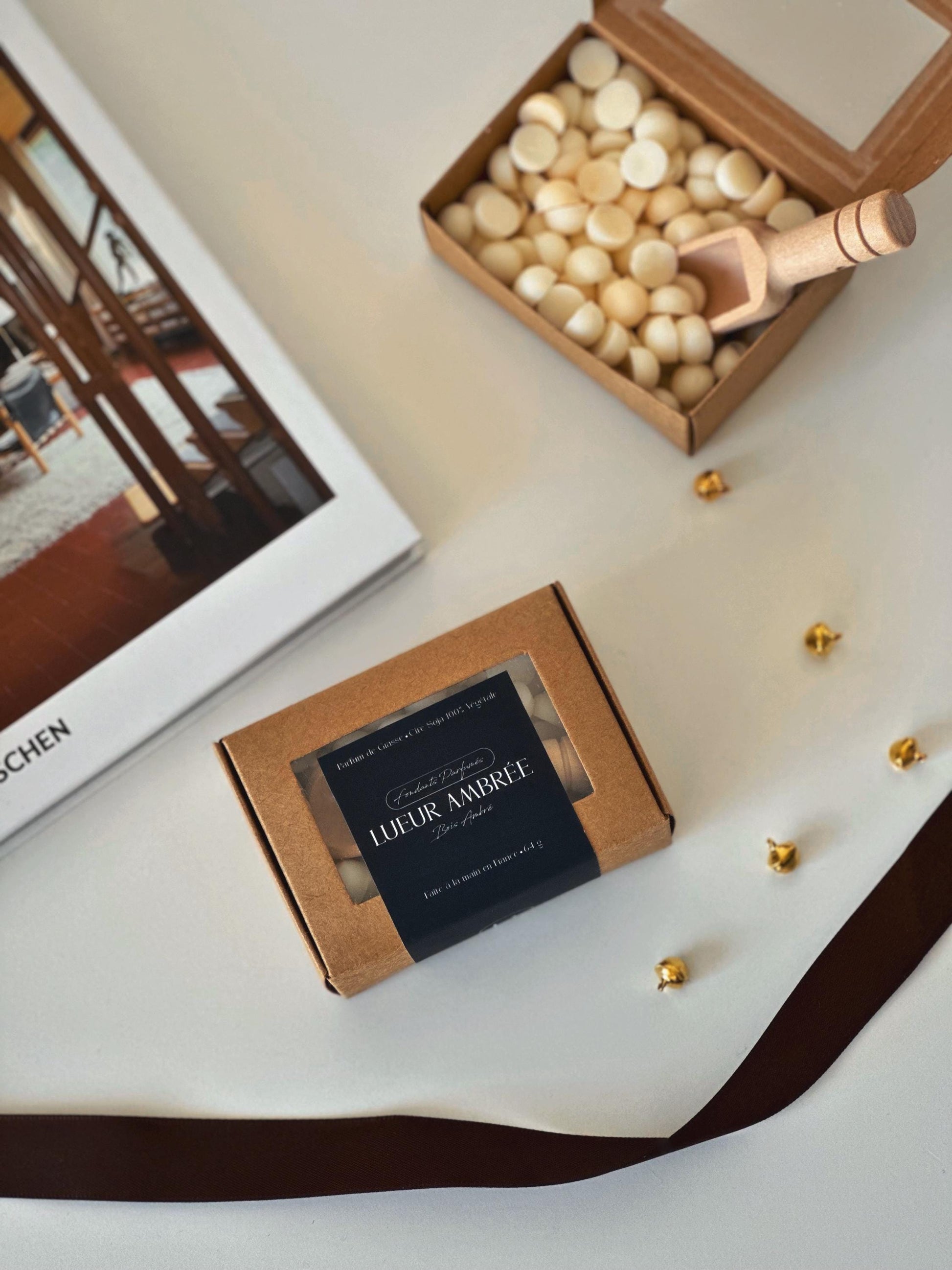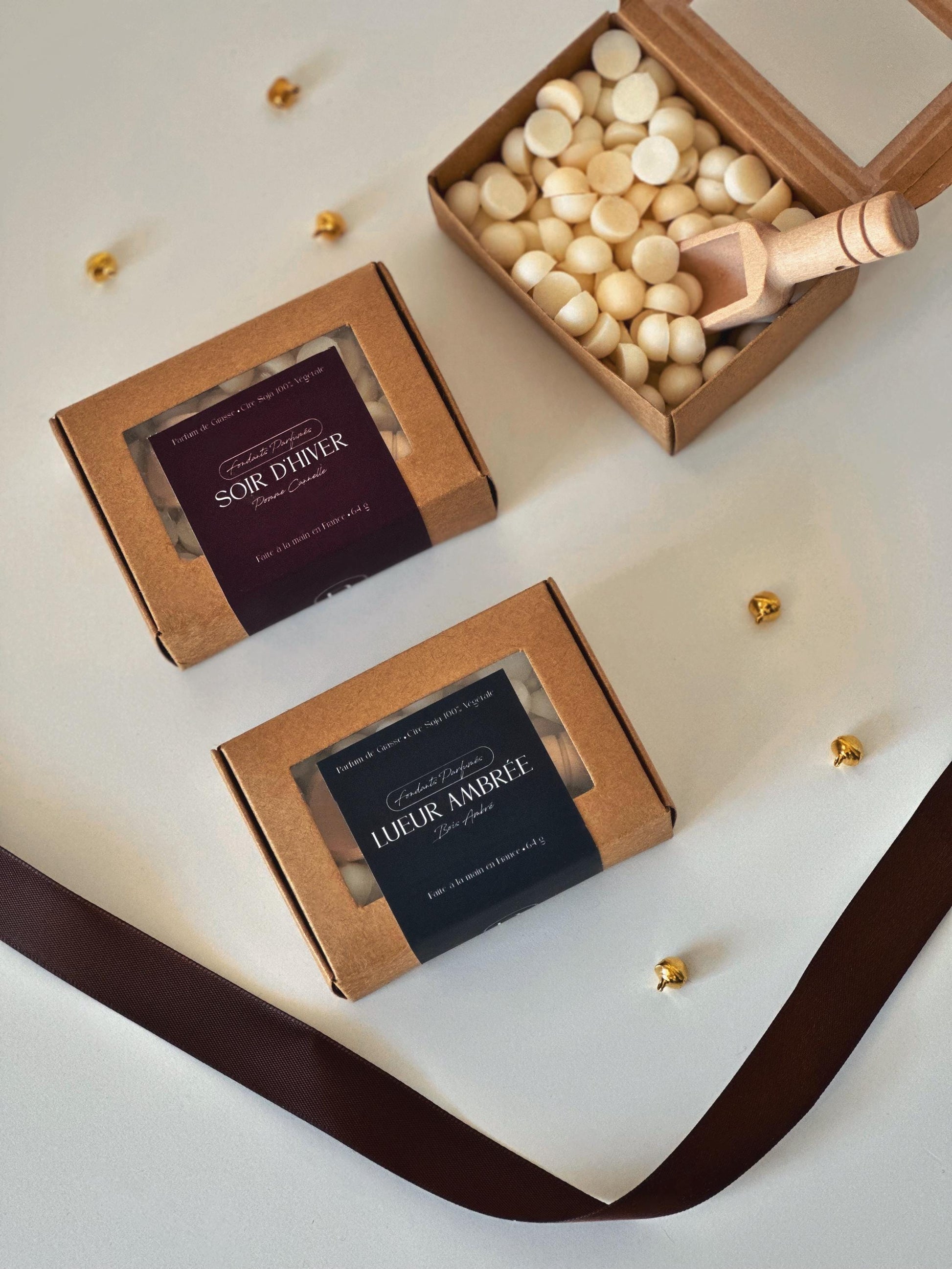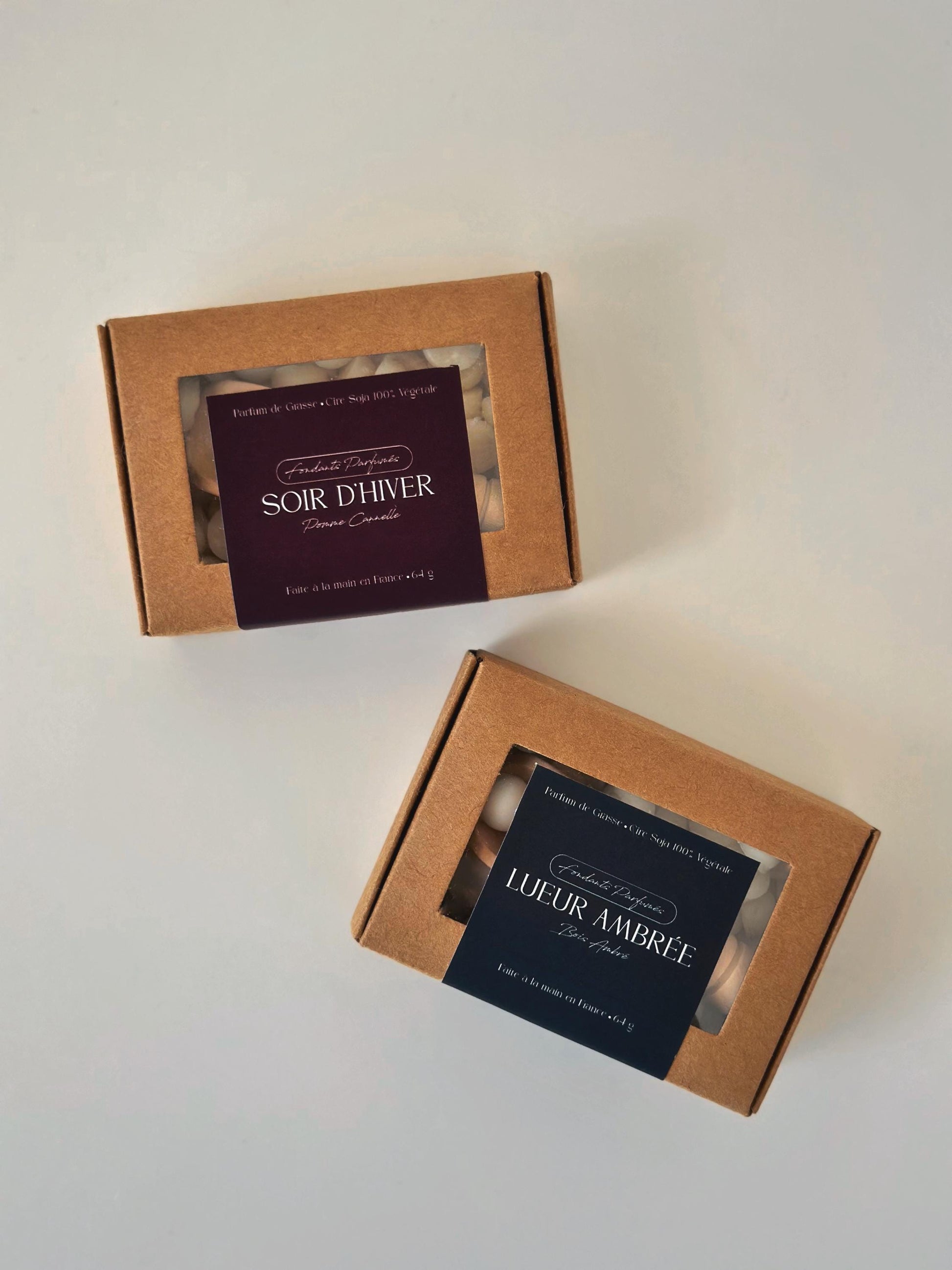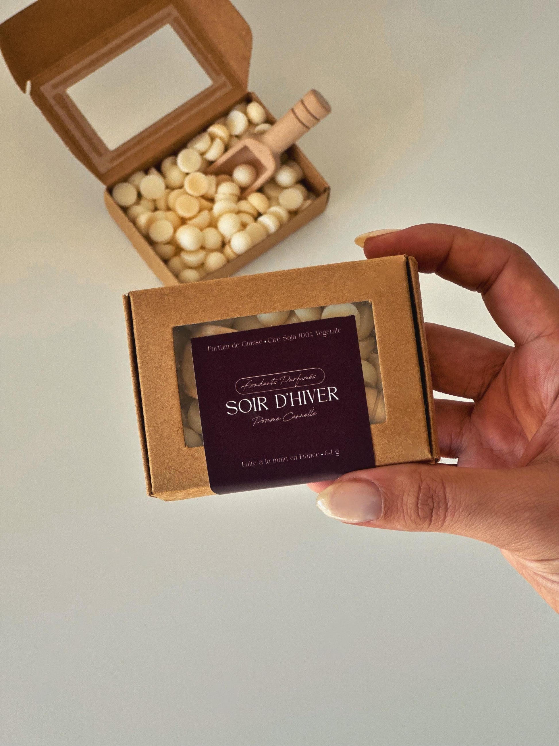 Découvrez nos fondants parfumés artisanaux en cire de soja naturelle, infusés de fragrances raffinées et fleuries.