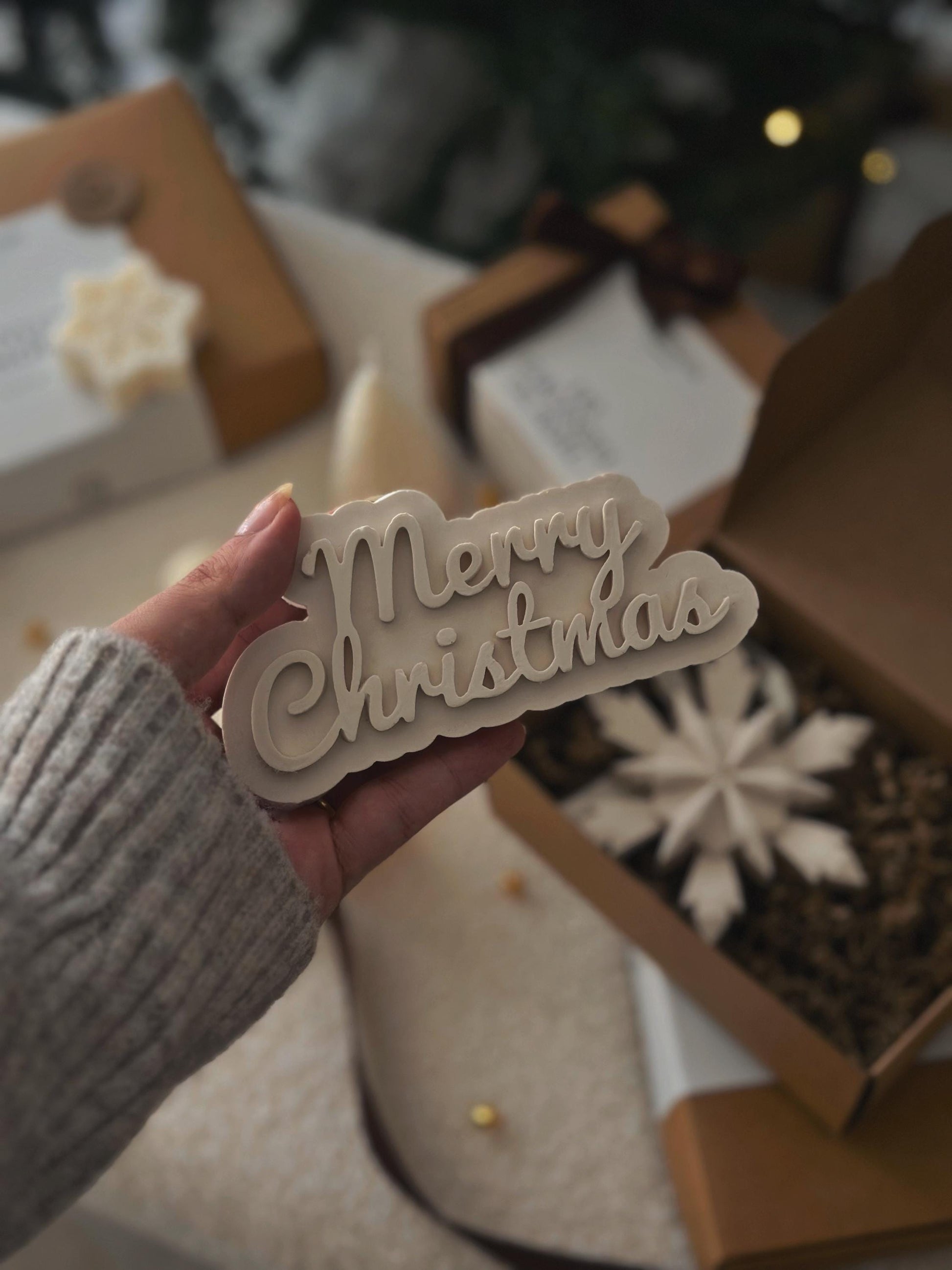 1 décoration “Merry Christmas” en jesmonite, finition blanche satinée