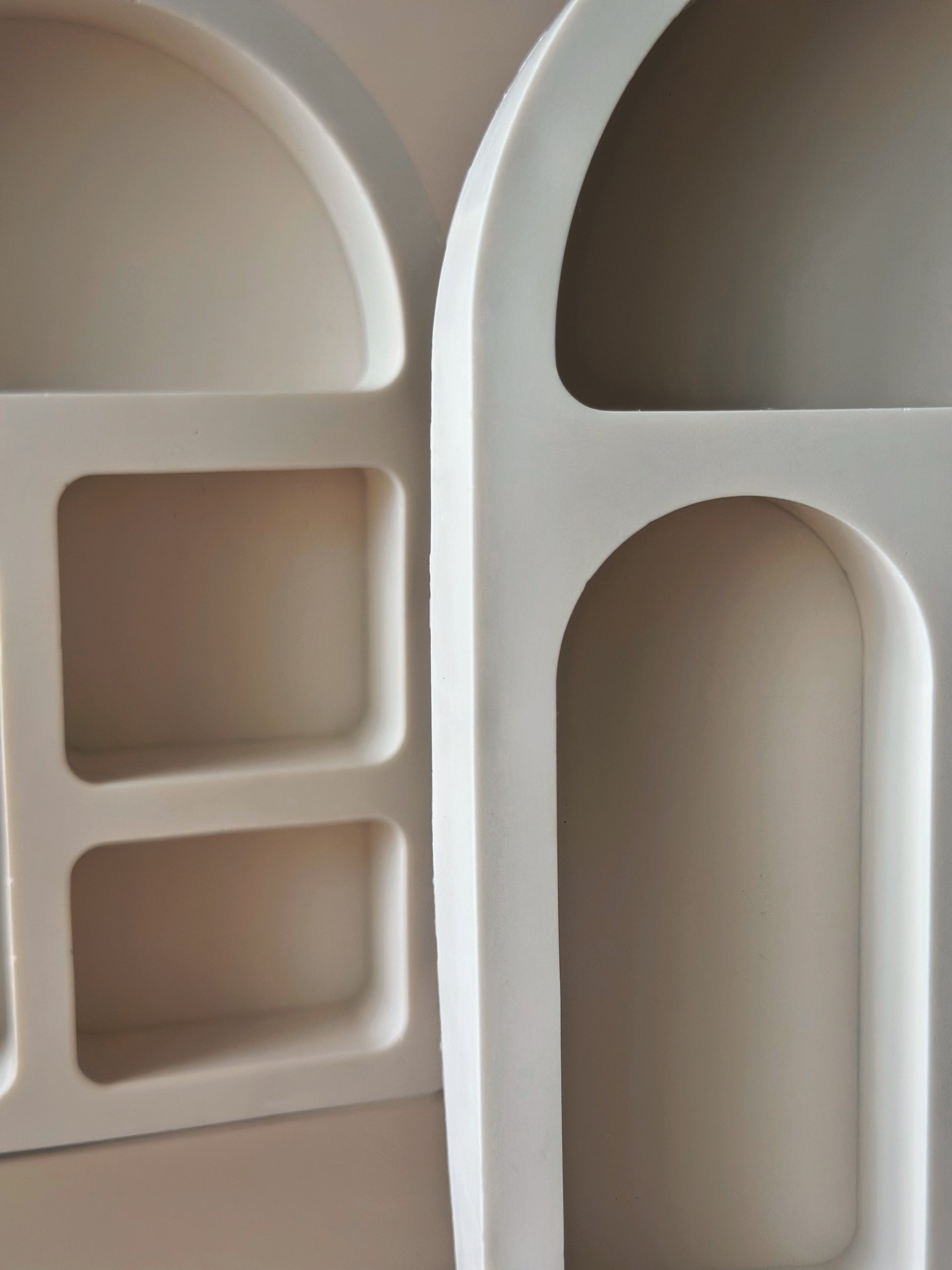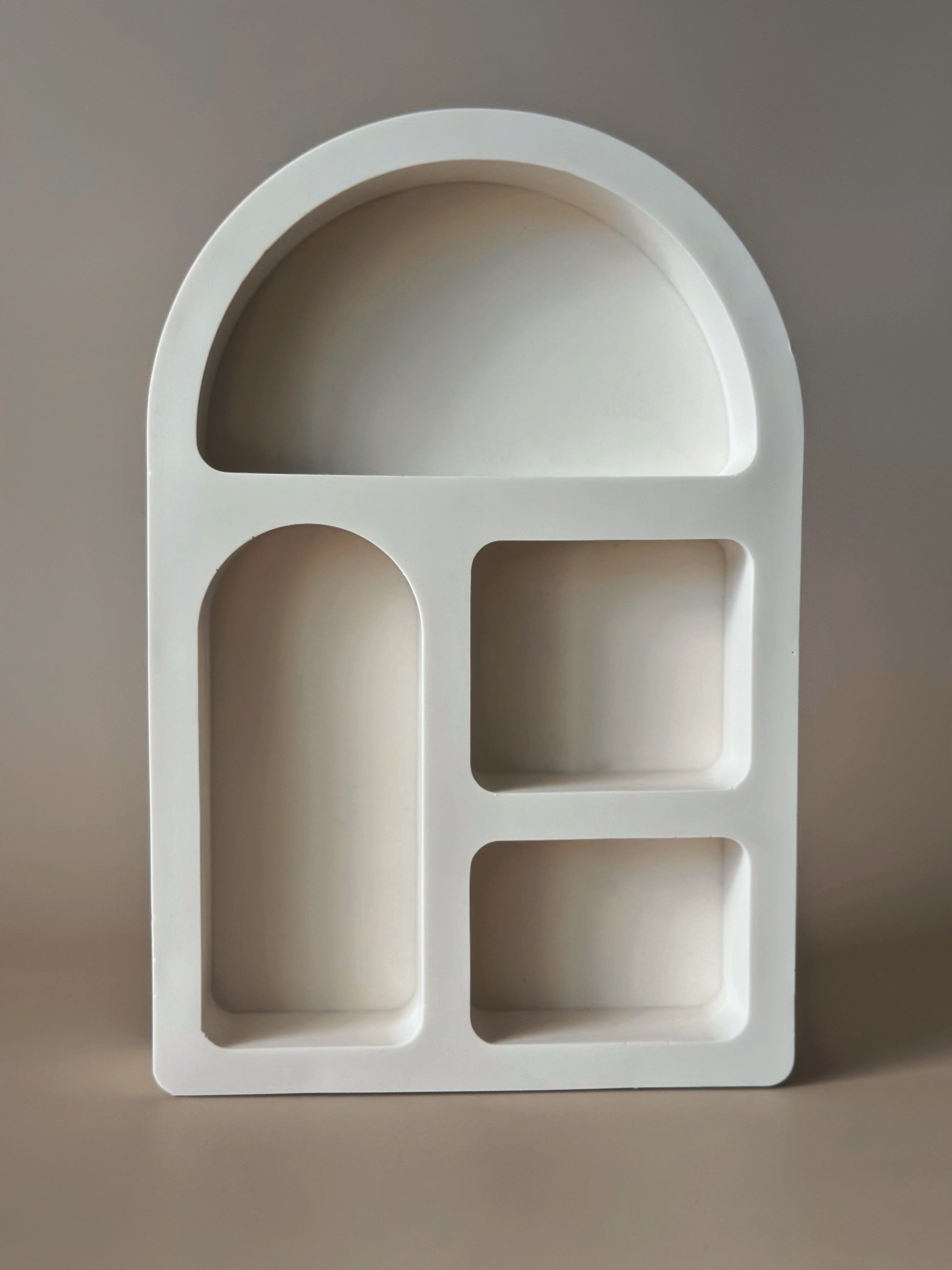 Inspiré des formes architecturales méditerranéennes, son design aux lignes arrondies et compartiments géométriques en fait une pièce unique, alliant modernité et authenticité.